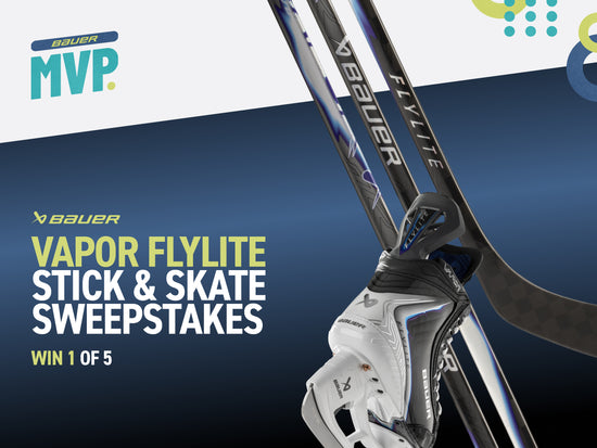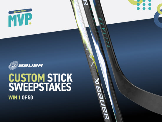 Take the ice with a stick that tells everyone you're an MVP. Loyalty members can use their Shots for the chance to win one (1) of fifty (50) custom BAUER MVP VAPOR FLYLITE player sticks — featuring an exclusive graphic and their choice of flex, pattern, namebar, and grip.